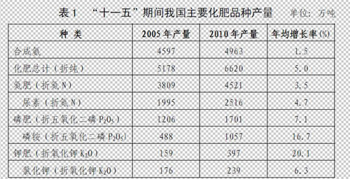 据初步统计,2010 年我国化肥产量6620 万吨(折纯,下同),“十一五”期间年均增长5.0%。主要产品产量均保持较快增长,尿素、磷铵、氯化钾产量年均增长分别达到4.7%、16.7%和6.3%。2010 年进口化肥386 万吨,出口化肥733 万吨,表观消费量约6273万吨,较好地保障了农业生产的需要。