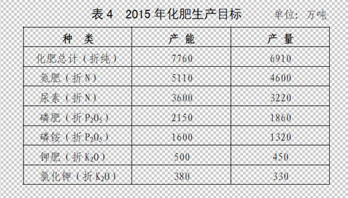 产品结构。到2015 年,尿素占氮肥的比重达到70%左右,磷铵占磷肥的比重达到70%左右,无氯钾肥满足国内需求,单质肥复合化率、大颗粒尿素比重逐步提高。