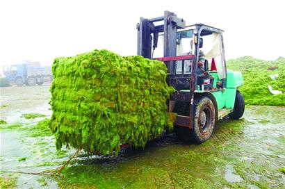 近日来我市前海一线受浒苔侵袭,6日记者采访了解到,为了提高浒苔的处置效率,我市在前海一线共设置了5个现场处置点,经打捞、转运、压榨脱水、处理后,浒苔最终将在胶州转化为各种形式的生物肥料。据了解,由于今年行动得早,浒苔质量比往年更好,后续利用率也高。