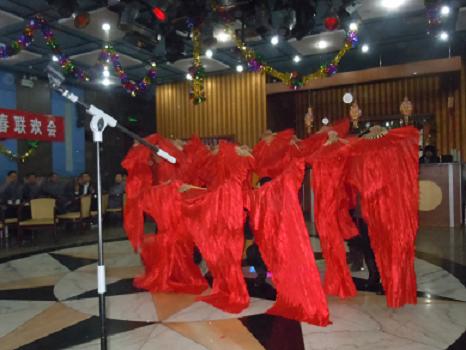 当天晚上,在实创歌舞厅举行了持续3个小时的联欢会。中农绿康的人们能歌善舞,节目形式不拘一格,雅俗共赏。有祥和喜庆的长扇舞《好运来》,预示2012年中农绿康运势一片大好;温馨的《相逢是首歌》《相亲相爱一家人》将彼此的心贴的更近;老歌唱不厌的《团结就是力量》,令人捧腹的双簧,激情澎湃的朗诵,气势恢宏的《向天再借五百年》,散发青春活力的《甩葱舞》……五彩缤纷的节目与的激动人心的抽奖和紧张刺激得游戏引得在场观众掌声如雷,一次次将会场的气氛带入高潮,整个联欢会弥漫着祥和与温馨的气氛。
