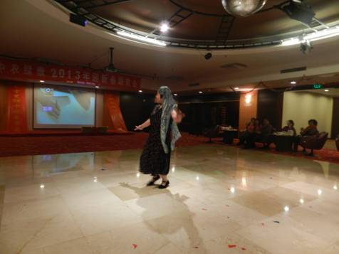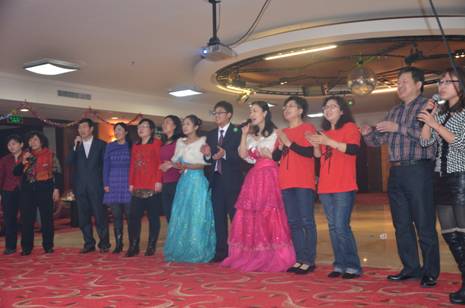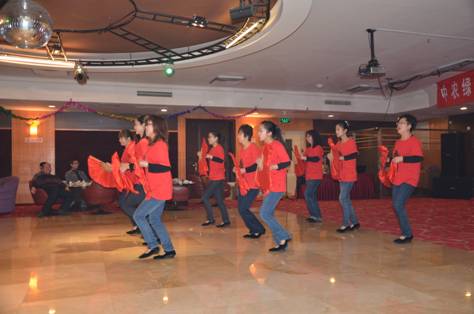 当天晚上,在新航线歌舞厅举行了欢乐祥和的迎新春联欢晚会。晚会在喜庆的开场舞《欢聚一堂》的音乐声中拉开了帷幕。五彩缤纷的节目赢得了在场观众的热烈掌声,激动人心的抽奖和轻松有趣的游戏将晚会不断地推向高潮,整场晚会弥漫着祥和与温馨的气氛。