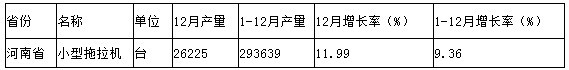 中商情报网数据显示:2012年1-12月河南省小型拖拉机产量为293639台。