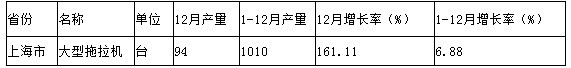 2012年上海市大型拖拉机产量分析