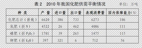 品种结构得到改善。高浓度化肥比重日益提高,整体达80%。钾肥国内保障能力由2005 年的24%提高到2010 年的56%。复混(合)肥、掺混肥、缓控释肥等专用肥料得到快速发展。