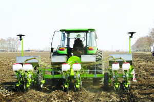 “这是今年为大面积推广高光效玉米栽培技术量身定做的气吸式玉米免耕精播机。”在现场指导作业的榆树市农机总站副站长宁文生介绍说,这种机器播种精确度高,播深一致,可保证出苗齐,增产15%左右,“它的作业效率是普通两行播种机的3倍,省工省时又省钱!”