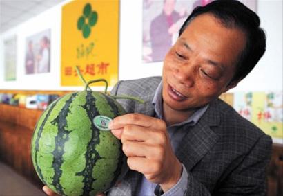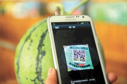 东方网5月13日消息:据《新闻晚报》报道,明天,本地30万只南汇8424西瓜将贴上二维码,陆续批量上市。市民可以通过手机扫描或上网查询,获悉手中的西瓜由哪个农户种植,使用了什么化肥、农药,农残检测是否合格,甚至是运输车辆的储存温度和湿度。不过,上海市瓜果行业协会秘书长朱龙舟表示,没有贴上二维码的南汇8424西瓜并非不正宗,因为首批试点仅覆盖了12家合作社的4千亩产量。