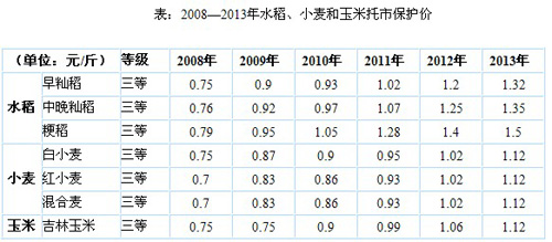 第二,玉米保护价首次与小麦持平。从2008-2013年各品种保护价提高幅度和价位来看,以吉林玉米为例,吉林玉米保护价除2009年以外均高于三等混麦/红麦价格,而2013年保护价提高0.06元/斤后与三等小麦平价。显然,政府在决策上既考虑到了保护农民利益,又考虑到了和其他品种之间面积分配和比价关系,未来玉米提高幅度也将参考小麦价格。