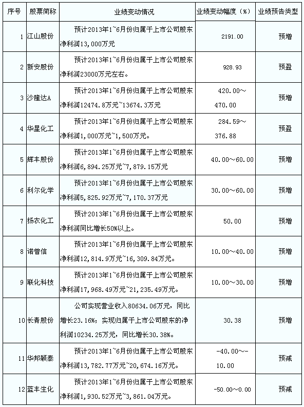 据统计,目前两市上市农药公司中,已有多家披露上半年业绩预告,其中江山股份等10家农药企业预告业绩同比上升。