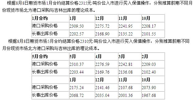 期货新作1月合约和5月合约的价格存在严重超跌,按照正常规律5月合约应高于1月合约价格30元/吨左右,然而在8月8日交易期间,1月合约和5月合约价差一度出现-15元/吨的差值,在跨月套利上存在40-50元/吨的投机机会。此外,对于现货企业有着更大的投资机会。