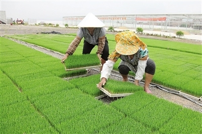 贵港市以建设育秧工厂为载体积极推广工厂化育秧,率先在全区实现水稻生产全程机械化。到目前,已建成港北区庆丰镇延塘农机专业合作社育秧中心、桂平市石龙镇振龙农机专业合作社育秧中心、石龙镇永和农机专业合作社和平南县大安镇正达农机专业合作社育秧工厂等4家育秧工厂,单造供秧能力超20000亩,位居全区第一。 (记者 黄楚程 摄)