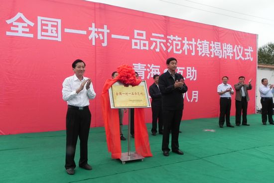 陈晓华副部长和青海省严金海副省长共同为获得全国一村一品示范村镇称号的青海省互助县台子乡多士代村揭牌,与会代表还现场参观了青海省一村一品专业村。