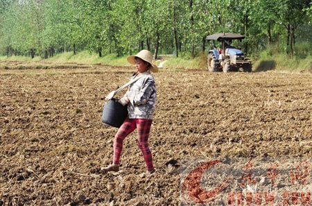 昨日,大冶市陈贵镇一位村民正在给平整好的土地施肥,准备播种油菜。目前,该镇为19个村共免费发放了42.5吨肥料、600公斤油菜种子。