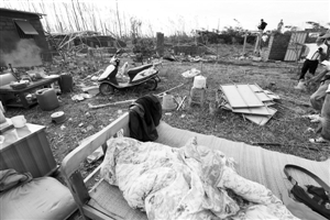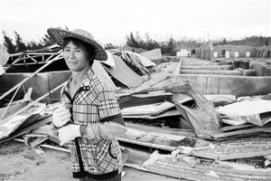 村民吴始胜开设的养鸡场内原本四五千只三黄鸡,如今只剩下几百只。使用3年的鸡舍被毁坏,皆拜“天兔”所赐。“我们那天晚上还守在这里,但下午风实在太大了,屋顶被吹塌,很多鸡都被压死了。”吴始胜一脸无奈,他的养鸡场位于村外的山林中,记者昨日看到,就在他养鸡场的四周,树木悉数倒塌,有几棵甚至砸到鸡棚上,直接将围墙砸烂。