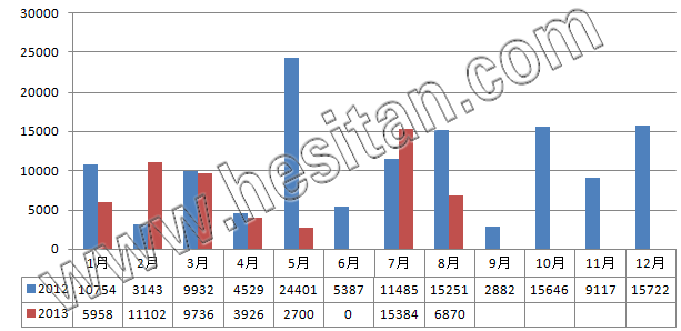 根据中国海关提供的数据,1-8月份我国进口种牛55,676头,同比下降34.41%,进口额14,574.01万美元,其中奶牛52,234头。