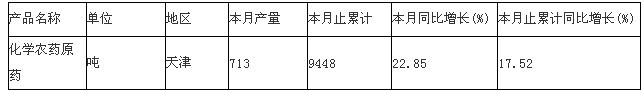 2013年1-8月天津化学农药原药产量统计分析