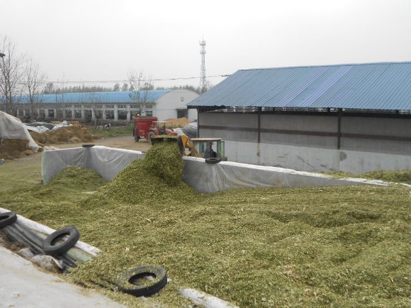 近日来,在青岛畜牧科技示范园区内的牛羊养殖企业内看到,秸秆青贮粉碎机在青贮池旁轰鸣作业,满载青贮玉米秆的大卡车正在往青贮池里卸粉碎的青贮玉米秆,园区一年一度的青贮玉米收贮工作正在紧张有序进行当中。
