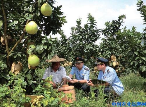 福建省华安县工商执法人员在柚子园开展农资消费维权工作