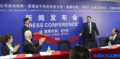 2月14日,陕西比盈生态产业集团收购美国上市公司——金牛风险投资公司的签约仪式在西安高新技术开发区隆重举行。从业40年来自美国的资深审计师飞利浦•肯皮斯提先生(Philip C Kempisty)、美国全球老年产业控股集团的布莱恩•基斯特勒先生(Brian kistler)、及比盈集团董事长唐华初共同见证了这一收购仪式,这一收购仪式的完成,意味着我国农业正在稳步迈入品牌化建设的康庄道路并与国际接轨,也标志着中国核桃第一股顺利诞生了。
