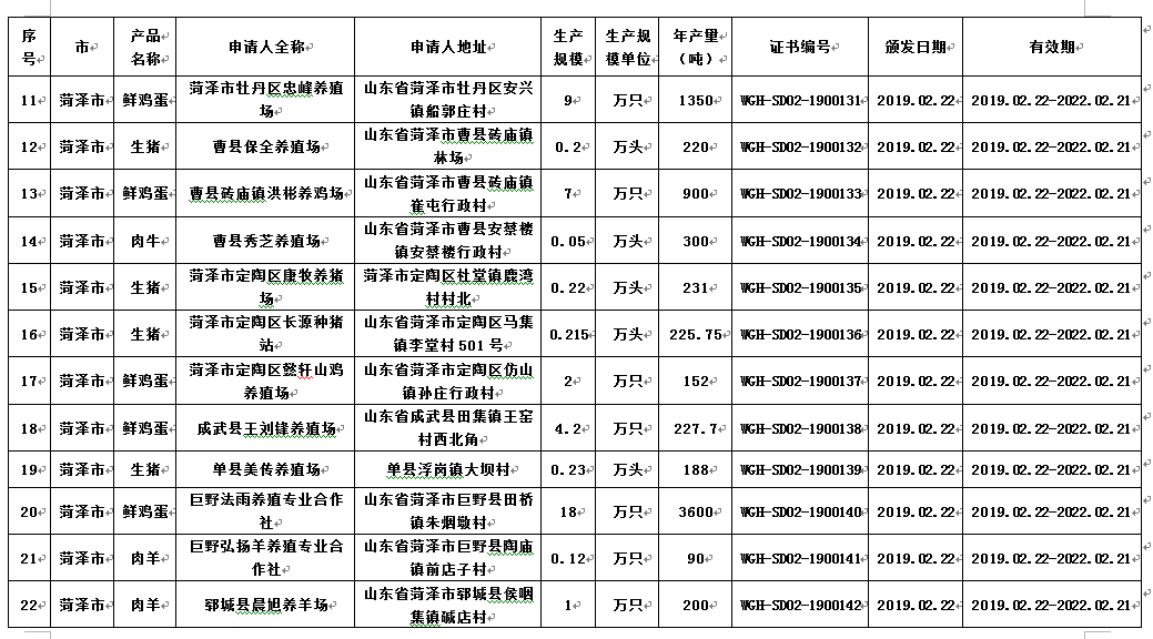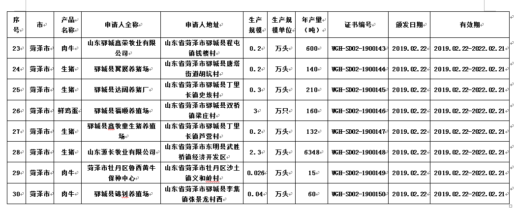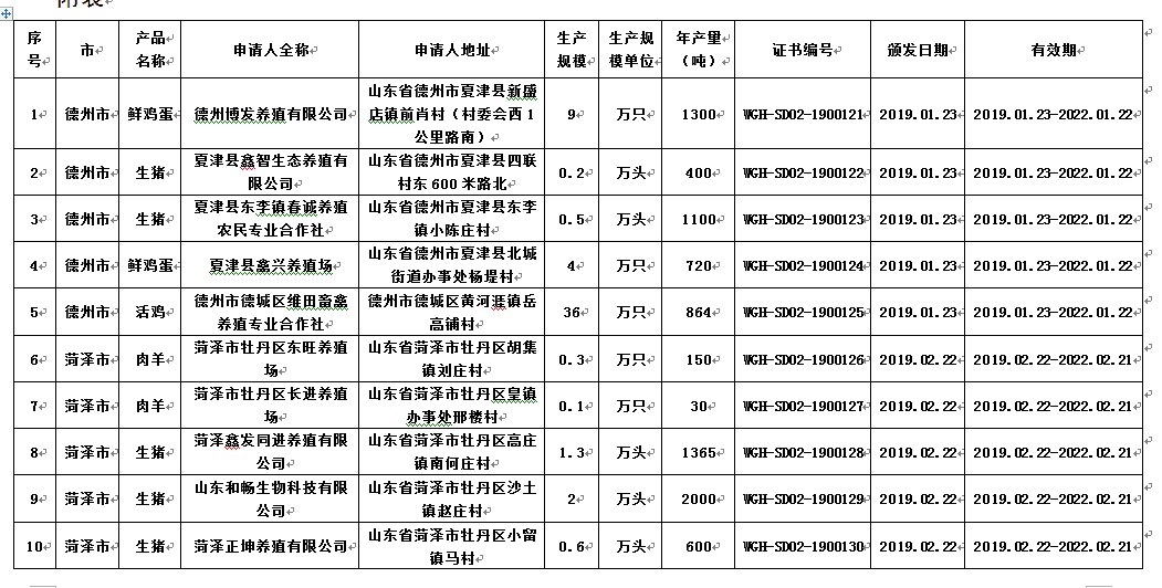 齐鲁网济南3月2日讯 省畜牧兽医局消息,根据农业农村部《无公害农产品认定暂行办法》,经县级初审,现场检查、产地环境检测、产品检测、市级推荐,省级复审,日前,山东认定德州博发养殖有限公司等30家企业的30个畜产品为2019年山东省无公害农产品。