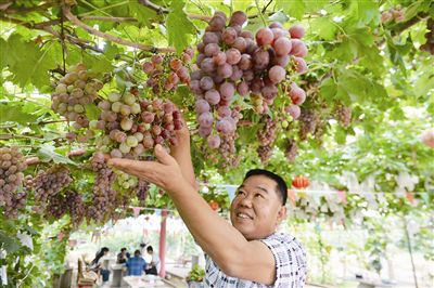 ■平度大泽山葡萄种植户在为游客采摘葡萄。 邢志峰 摄 ![]()