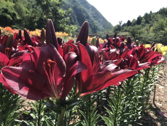 在北京延庆东北部山区,藏着一个自然村——榆树湾村。行走在山间,忽然一片彩色的百合花海映入眼帘,黑色、双色、香槟色等400余种百合竞相绽放。