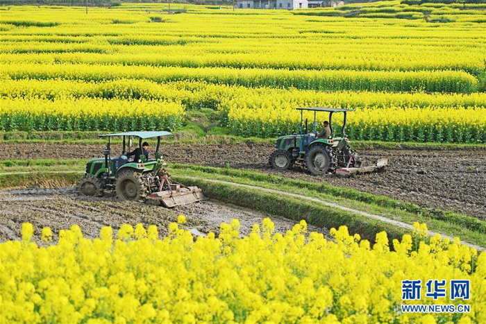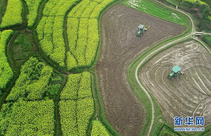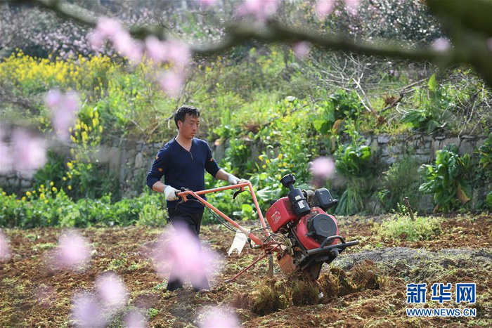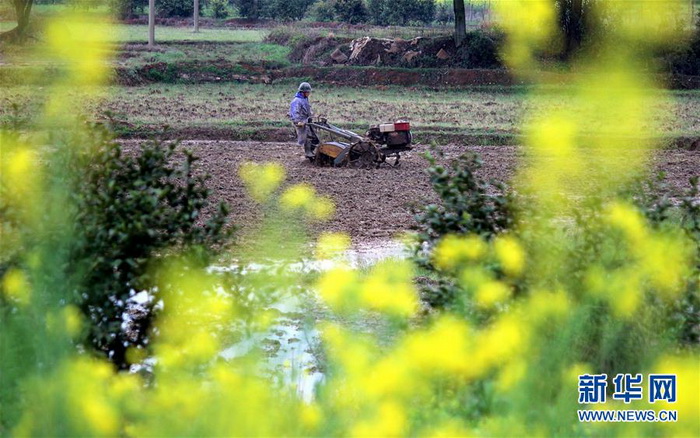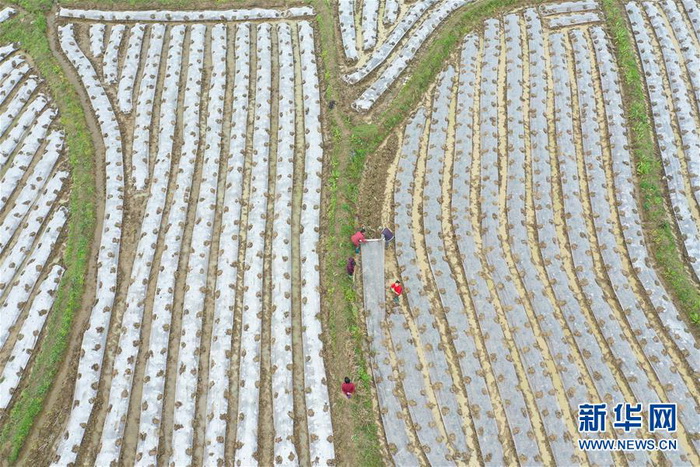 各地农民抢抓农时春耕春播,田间地头到处是一派繁忙景象。 新华社发(何红福 摄)