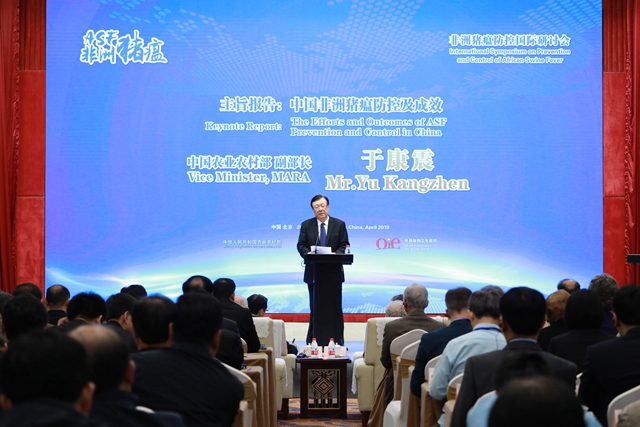 本网讯 4月9日,由中国农业农村部与联合国粮农组织(FAO)、世界动物卫生组织(OIE)共同举办的非洲猪瘟防控国际研讨会在京举行。与会代表就疫情监测预警、疫情根除和疫苗研发进展等议题开展了广泛交流,就加强防控合作,共同防范和化解非洲猪瘟带来的风险进行了深入探讨。农业农村部部长韩长赋、OIE总干事艾略特和FAO助理总干事提詹尼等出席会议并致辞。
