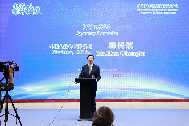 韩长赋指出,在当前全球化的大背景下,有效应对非洲猪瘟已成为国际社会面临的共同任务。他就加强非洲猪瘟防控合作提出三点倡议。一是建立健全合作机制。广泛开展并深化疫情防控国际合作,充分利用各区域、次区域机制,统筹制定防控方案,落实防控措施,建立完善有力有效的联防联控机制。二是加强防控能力建设。强化全球和区域非洲猪瘟监测预警机制建设,进一步提高对疫情的早期预警和应急处置能力。推进科研,提升科学防控水平。三是支持国际组织更好发挥作用。FAO、OIE等国际组织在非洲猪瘟防控合作中有着至关重要的地位和作用,中国政府积极支持它们在防控疫情扩散蔓延、加强国际交流合作等方面发挥更大作用。