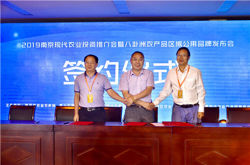 9月18日上午,2019南京现代农业投资推介会暨八卦洲农产品区域公用品牌发布会在八卦洲陌上花渡园区举行。市农业农村局副局长顾正良、李明水,栖霞区委常委、政法委书记、副区长秦志刚,全市各区农业部门相关领导以及签约企业代表等参加活动。