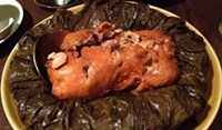 叫化鸡入口酥烂,是常熟地区的特色菜,在吃叫化鸡的时候,打开泥壳,就可以闻到荷叶的香味,风味独特,配上酱料和葱丝,味道甚佳。