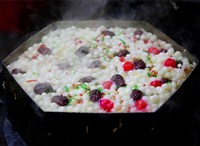 要说这制作梅花糕也是功夫活儿,还得有耐心。首先,把准备好的面粉和酵母粉加水做成面糊,可别小看这一步,水不能加多,也不能加少,一定要适量。不然,这口感可就差了。所谓失之毫厘谬以千里,切记切记。之后再将其注入模子内,撒上五颜六色的馅料,放上白糖增加甜度。这馅料也是有讲究的,这豆沙若是炒过的,必然细腻,滋味甚好。或者换成果酱,也一定要酸甜开胃。之后,盖上铁盖板烤熟梅花糕。