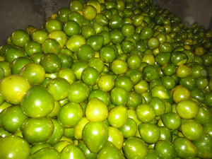 果形倒卵圆形,纵径横径比为15.5 : 16;单果重1200克~2350克,平均1680克;皮色黄绿色;果肩圆尖,偏斜一边;果顶广平、微凹、环状圆印不够明显与完整;果面因油胞较突,手感较粗;皮薄,平均厚0.7㎝~0.9㎝。囊瓣数13~17瓣,有裂瓣现象,裂瓣率54%,囊皮粉红色;汁胞红色,果汁丰富,风味酸甜,品质上等。