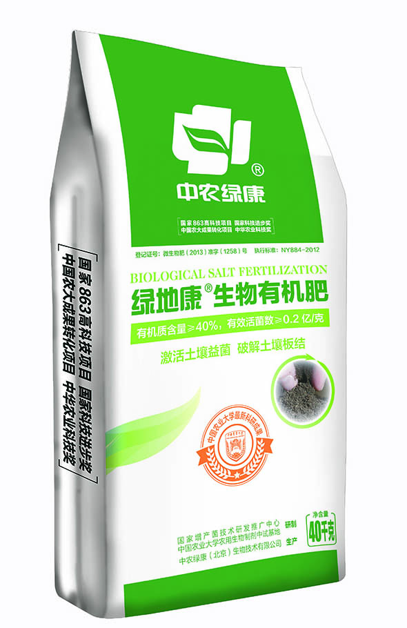生物有机肥是中农绿康(北京)生物技术有限公司联合中国农业大学开发成功的具有提高土壤有机质含量,改良土壤,防病,抗重茬等功能的高科技产品。